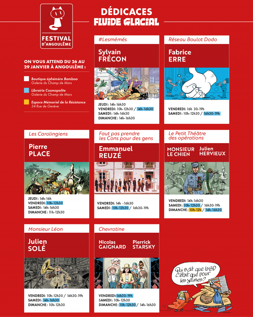 Le festival d'Angoulême, c'est déjà la semaine prochaine ! Quoi de mieux par ce temps hivernal que de se réchauffer le cœur en allant aux séances de dédicace de vos auteurs préférés ?